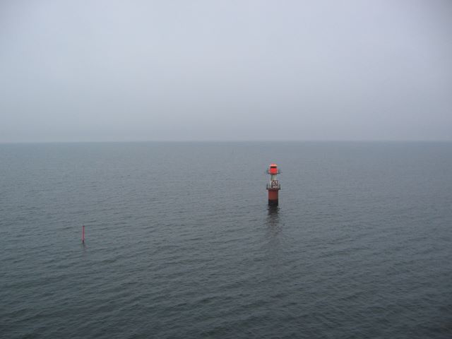 Frachtschiffreise -- Schwedisches Seezeichen am frühen Morgen