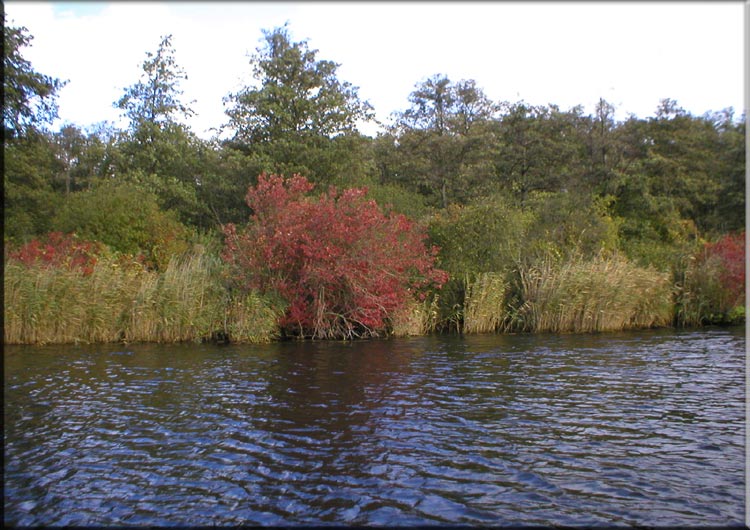 Herbstbild einer Flussfahrt. Auf dem Peenefluss in Mecklenburg.