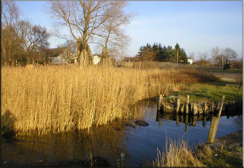 Warthe. Fischerdorf im Dezember. Am Achterwasser der Insel Usedom in Mecklenburg-Vorpommern.
